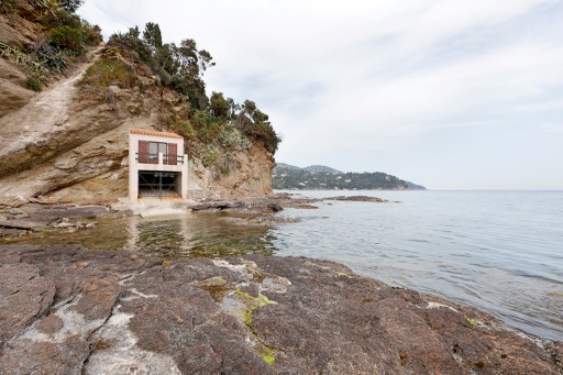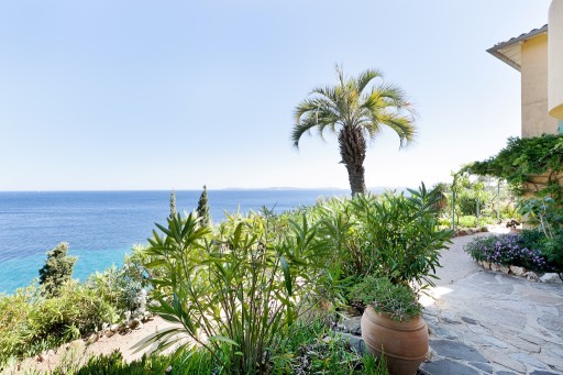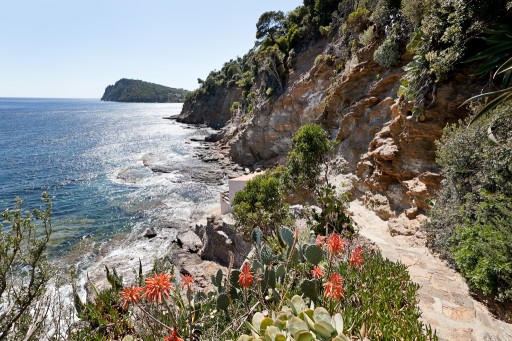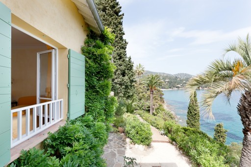 A fresch family villa set on a steep hill with direct access to the sea at Le Rayol. The very spacious Mediterranean gardens recreate a wild outdoor environment in 3500 sq m planted with succulent plants, palm and cypress trees. 80 steps lead down to the private rocky beach: swim out or take the boat from its garage, walk with children to the sandy beach two minutes away.