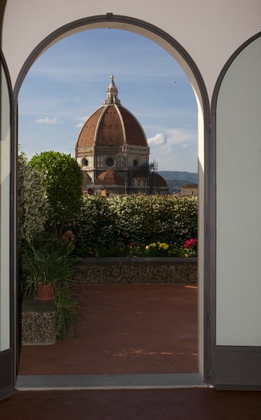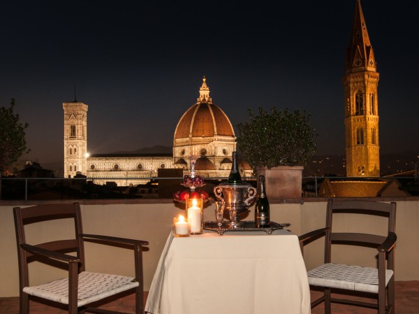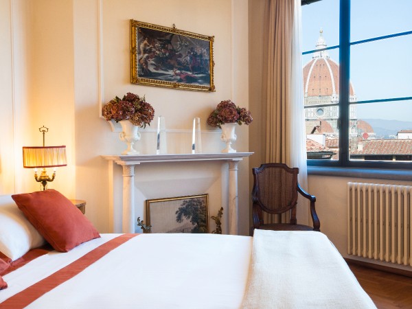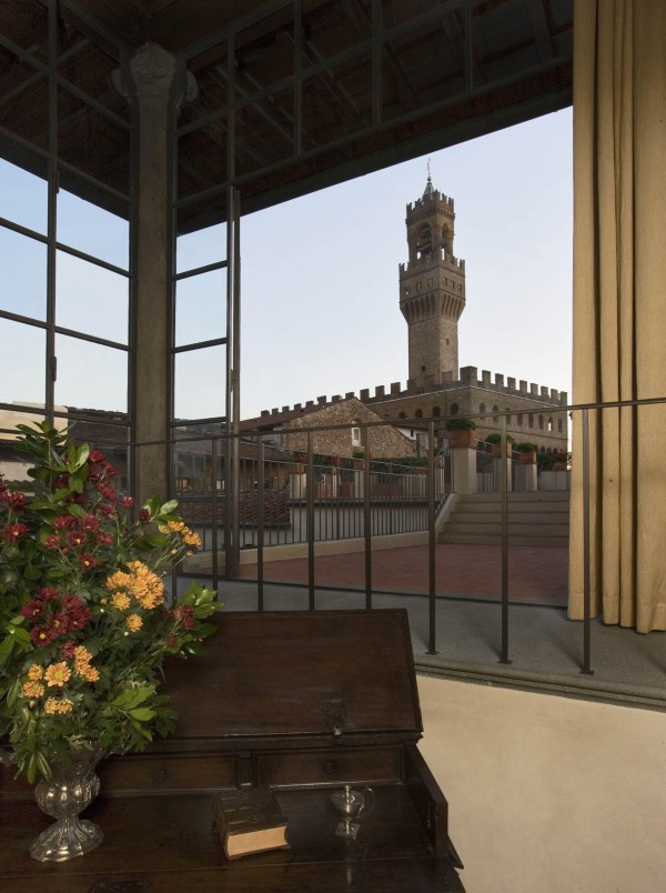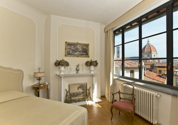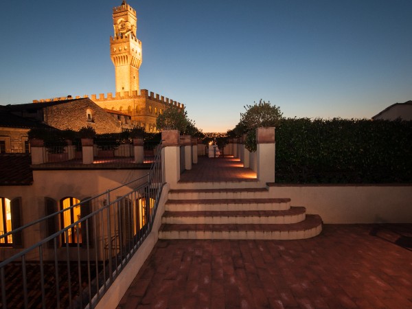 A rooftop terrace measuring over 50 sqm, complete with dining area and outdoor Jacuzzi, is reached through the upper chamber (nowadays referred to as the studio), and overlooks the most famous of Florence's monuments: the Duomo and Santa Maria del Fiore.