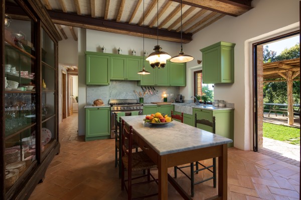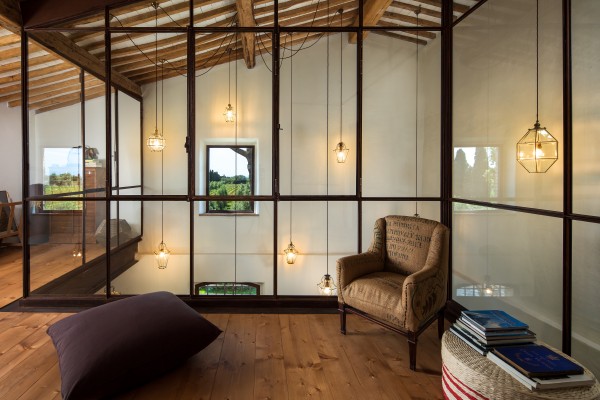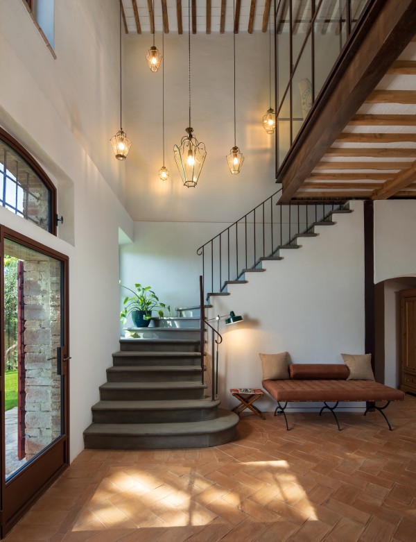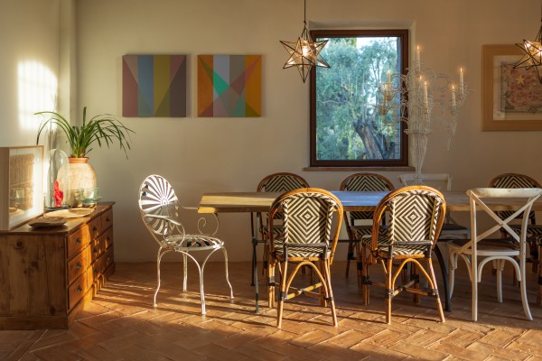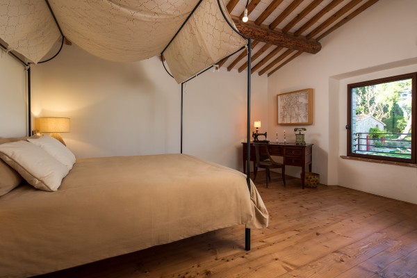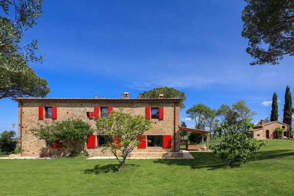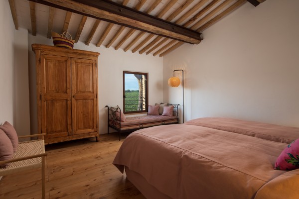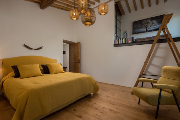 The main farmhouse comprises on the upper floor, 4 bedrooms each with private bathroom , another bedroom with external bathroom and a bedroom with private bathroom on the lower floor. Each room is furnished with extreme care and passion, with the skillful use of color and the combination of antiques and pieces of contemporary art that give the entire farmhouse a great and unique personality. The floors are made with the ancient terracotta typical of the area and the external walls with the typical exposed bricks of the late 19th century farmhouses. The whole structure is equipped with underfloor heating and air conditioning.