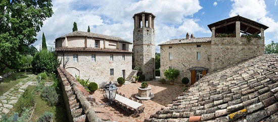 A large estate and natural reserve with walking and biking trails, five Medieval castles, olive groves, woods, a sprinkling of lakes and a working farm. An 11th Century Abbey flaunts a peculiar eight-sided bell tower resonating with history and located just off the highway midway between Florence and Rome right on the border between the regions of Tuscany and Umbria, very near Lake Trasimeno, a place known as ‘the green heart of Italy’.