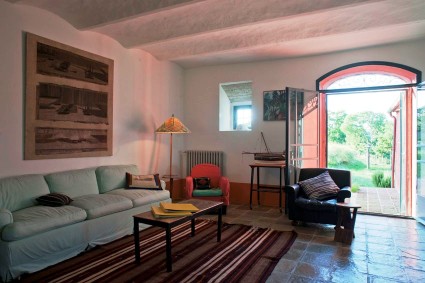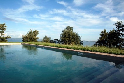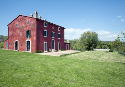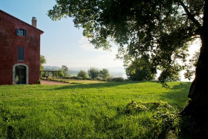 Set on the shores of the unique crater lake at Bolsena in the northern portion of the province of Viterbo, also known as Tuscia, which the Ancient Romans inherited from th Etruscans who first settled there. The red house was recently completely restored and outfitted with select designer and vintage furnishings to the highest standards of chic country living. Its hilltop location on a 5-hectare property on a hill overlooking Lake Bolsena offers a stunning 360-degree view. The lake is just a 3-minute drive away, and you can enjoy beautiful walks along the white road, where you will find small beaches on both the right and left sides.