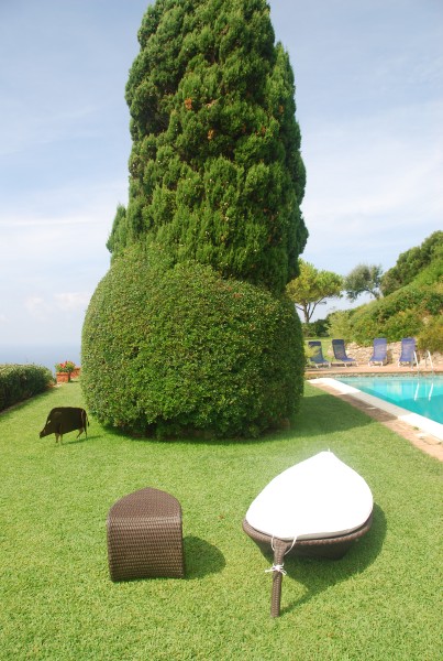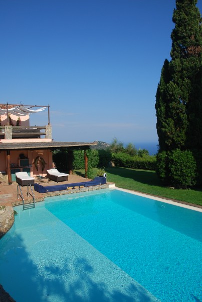 From the terrace, the pool deck and the Mediterranean gardens, guests will feel they are alone in a paradise. A walking trail through the brush surrounds the house as a stretch of Tyrrhenian Sea extends its deep blue in tint, with numerous inlets, bays and rare pebble beaches. The Hotel Pellicano overlooks these same waters from just a few kilometers away and jet setters from all continents have visited for decades.