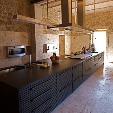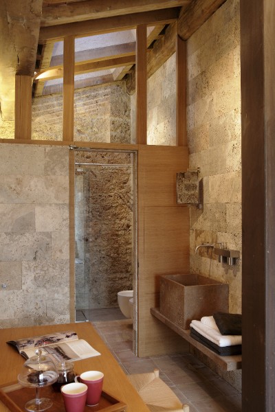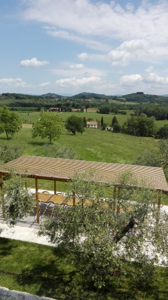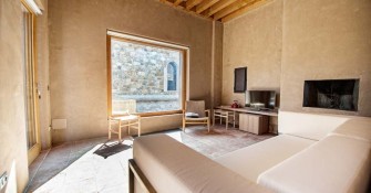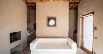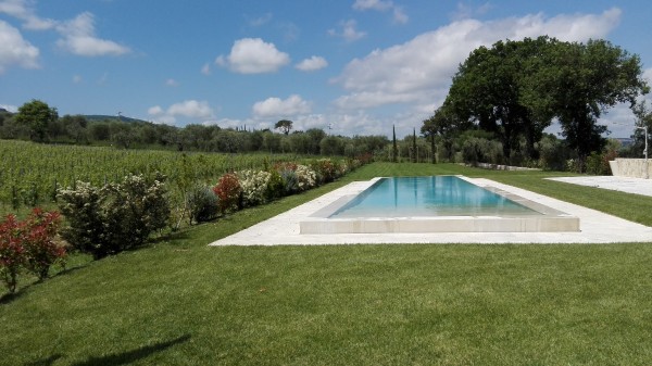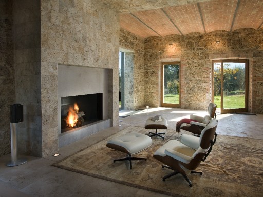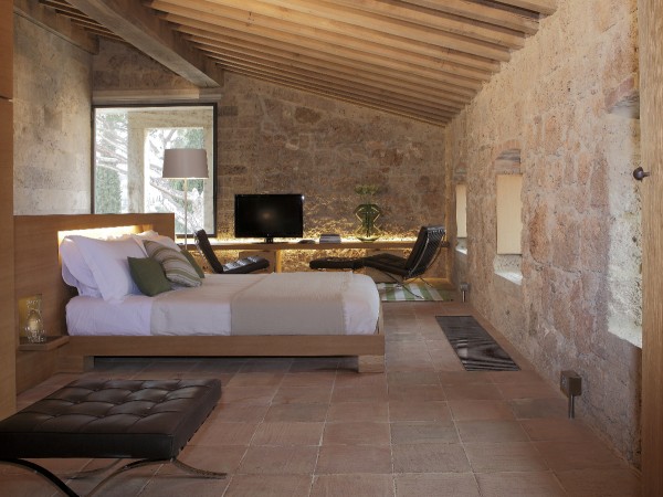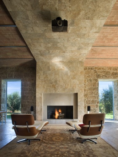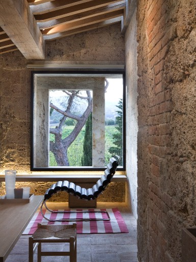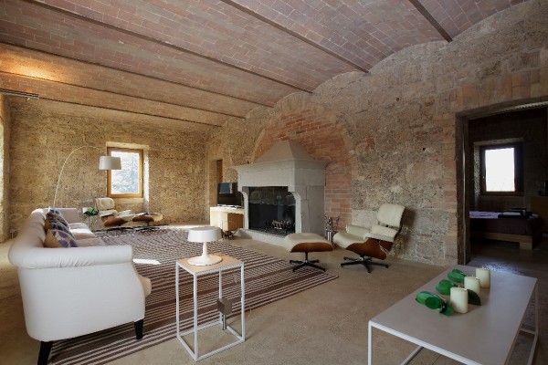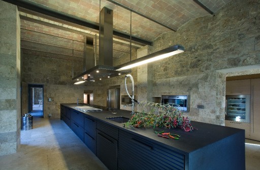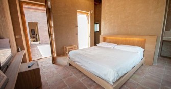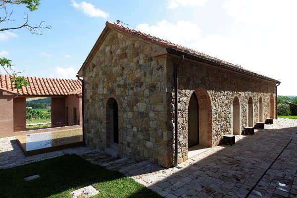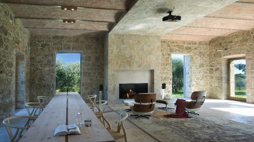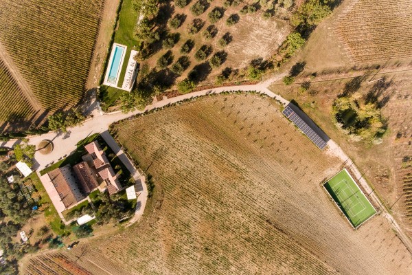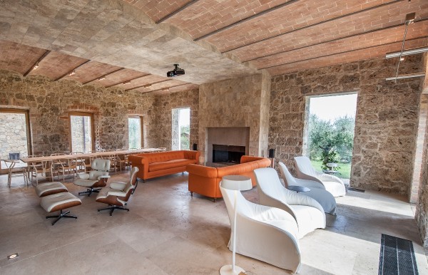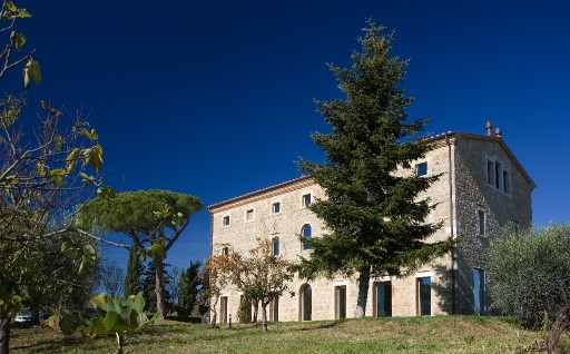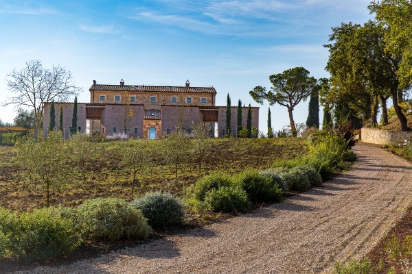 Elevated upon an ancient farmhouse, a majestic building made of travertine blocks, whose slick refurbishing has brought Poggio Mori to a new level of hospitality: the insides of this luxurious yet simple dwelling have been stripped bare so as to exspose the walls' beautiful composition of Sienna vulcanic rock. The atmosphere is slick and contemporary with modern furnishings and led lighting complementing the essentiality of this design. The farmhouse, built on a low hill, has a favourable south-facing position and offers a beautiful view of the surrounding landscape. To the north of the farmhouse is the entertainment room complete with wood oven, barbecue, bar and well equipped area for hosting events and wine tastings, connected to the two guest cottages by paths and stone steps running around two wide decorative pools. The courtyard below them is partly dedicated to the fitness area leading to the Spa and massage room. The main villa is equipped with a professional chef's kitchen, a large dining room with adjacent living area, a wine cellar, 4 double suites and two 2-bedroom apartment suites, plus a granite swimming pool, all on the Poggio Mori Estate which also produces most of its own food.