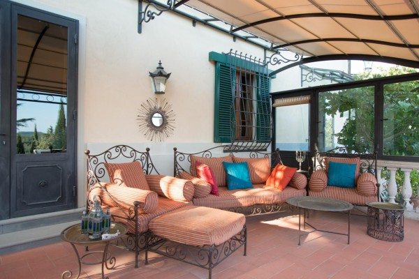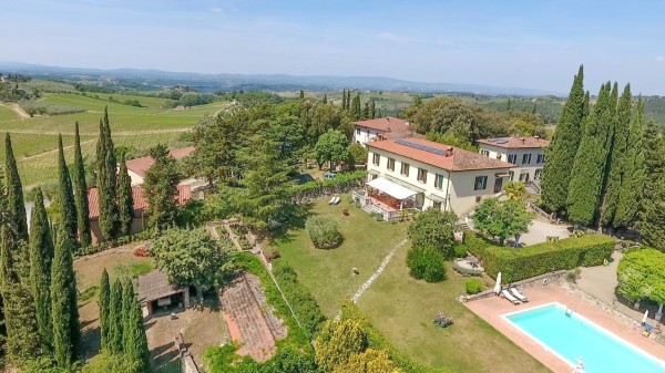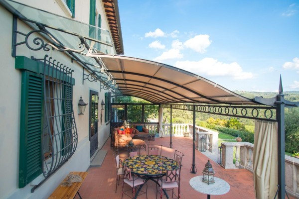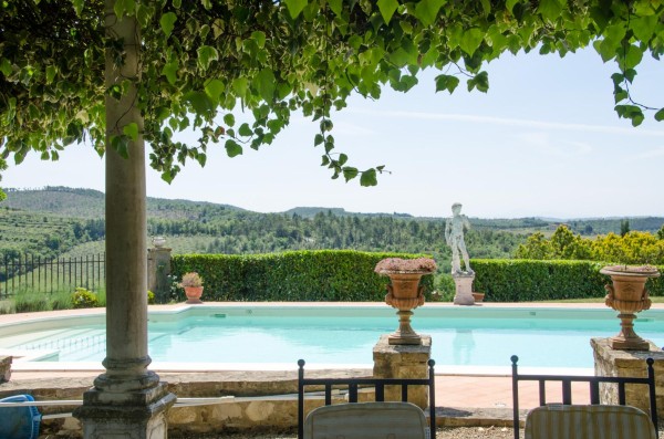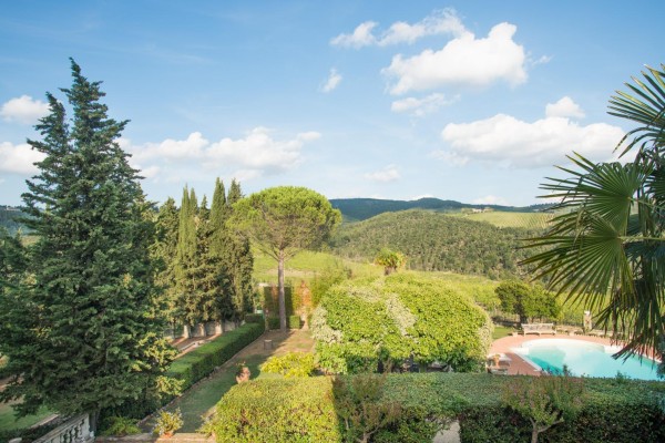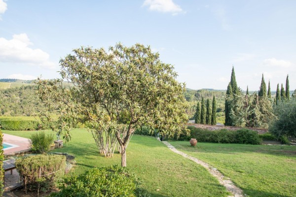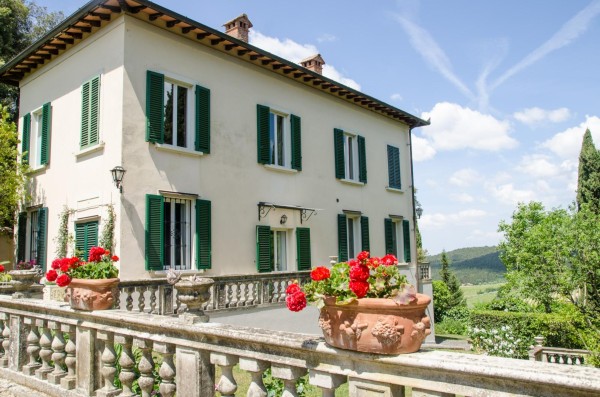 Recently acquired and entirely refurbished by its current owners, Villa Romanza sits just a stone's throw from the charming town of Castellina in Chianti, one of the loveliest on the Sienese side of the Chianti wine region. The property is surrounded by a vast woodland and sits amongst prime DOC Chianti vineyard yet is only 55 km from Florence airport. pets are welcome here, as are large group gatherings, as the property can comfortably host up to 14 guests divided between the two villas. One villa is a two-bedroom apartment with a living area and kitchenette; the larger villa which hosts tha main living room and terrace, as well as the country kitchen and 4 double bedrooms, continues onto a separate apartment with breakfast room and kitchen corner for a separate couple. All of these spaces enjoy open access to the Italian gardens, rose arched walkway, covered al fresco dining terrace and swimming pool area with sundeck.