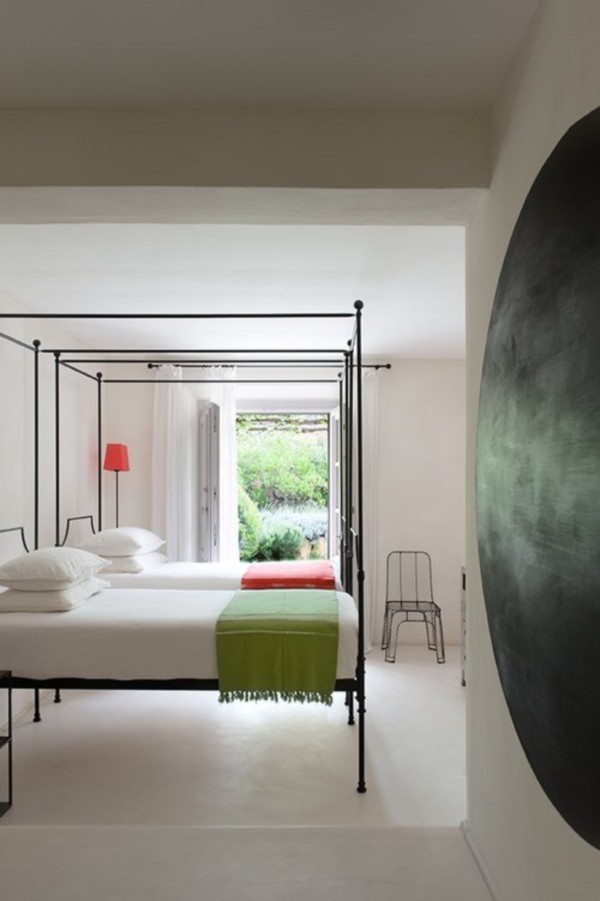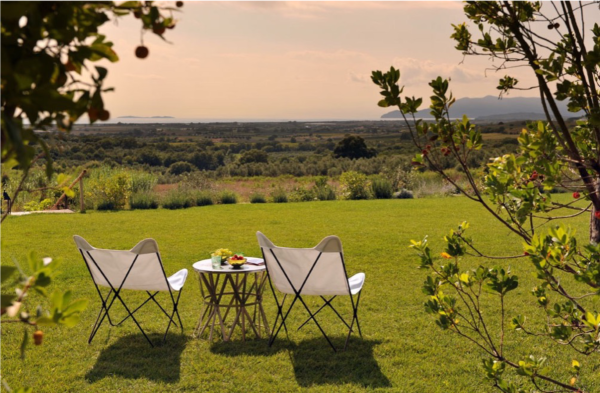 The generous sleeping spaces, with large dressing rooms and sophisticated ensuite bathrooms, are all air-conditioned and outfitted with all linen, sheets and towels, hairdryers, soap, shampoo, shower gel and body lotion. The bedrooms are set out over three levels which guarantees privacy for the guests: two are situated on the ground floor, divided by a cosy living room with TV which opens onto the terrace; two suites on the upper floor have sweeping views to the sea and direct access to a private terrace; two further double bedrooms are situated on the lower ground floor, sharing a living and TV area, both with French windows leading onto a private terrace and into the garden.