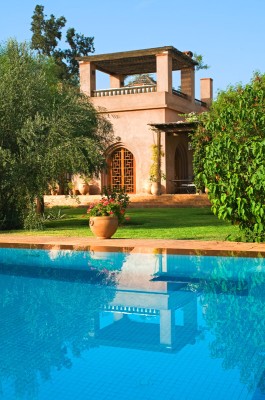 Originally built in the 1930s and completely refurbished to modern standards of luxury, this attractive property's two hecatres of walled and landscaped gardens are filled with fragrant rosebush, palm, olive and citrus trees. The villa's authentic Moroccan style is reflected in hand-polished stone and plasterwork, in it's carved cedar shutters; the fabrics, artwork and objects which adorn the interiors also recall local craftsmanship.