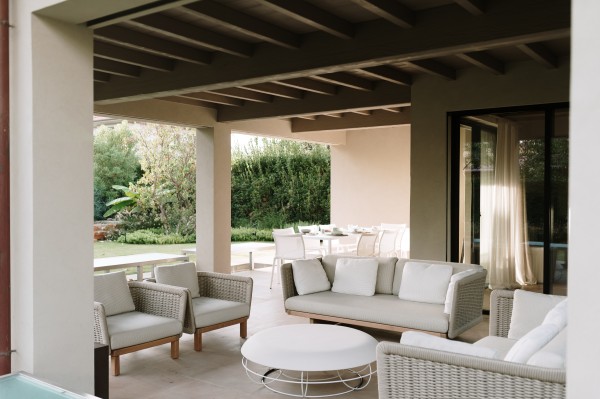 Utterly contemporary in its style furnished with only top of the line Italian pieces and with automated blinds system on all its French doors and peculiar round windows, the villa is a breezy open-plan living space on the ground level, which has access to the garden on all four sides. Below, besides the two guest bedrooms each with private baths, is a large party area with second kitchen and large living area and cinema space. On the top storey, two very large master suites share nothing but the staircase between them. All of the windows look onto the green areas outside, where a lovely shaded dining terrace and a spacious living patio are also decked with stunning decor, across the lawn a small 4x2 m plunge pool sits amidst the flowerbeds.