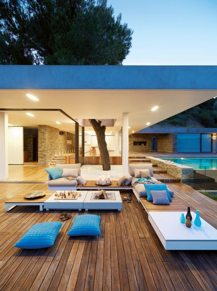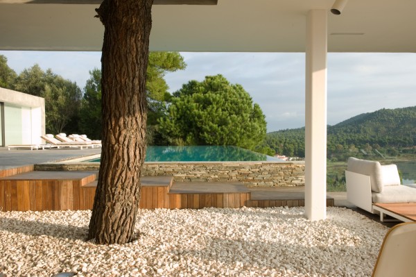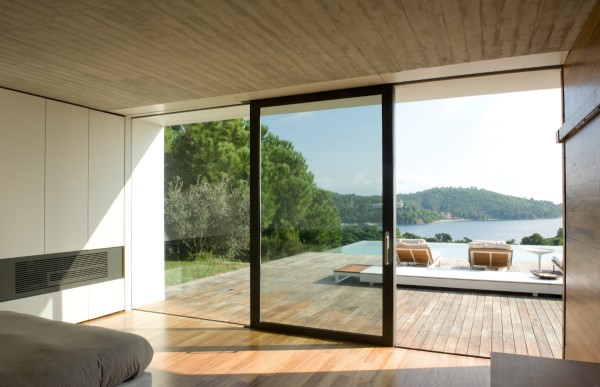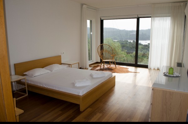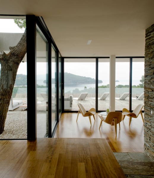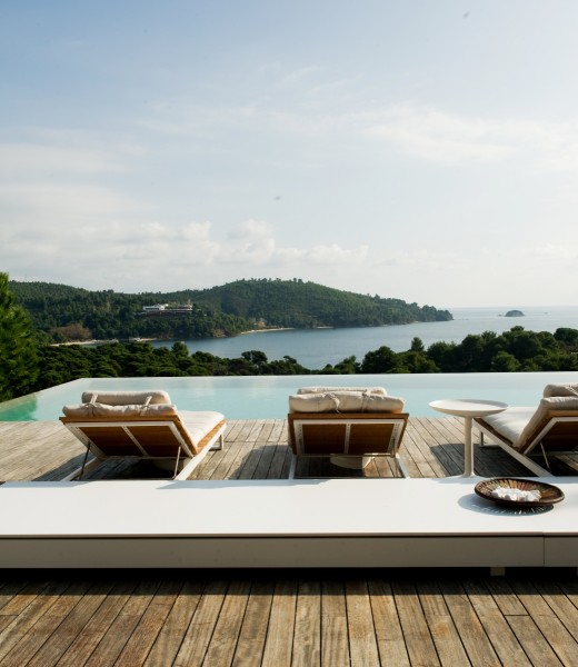 A conceptual design villa built over two levels with a total of six panoamic bedrooms. Spacious interiors with large sliding windows seamlessly connect to terraces bathed in sunlight; the furniture is modern and practical with many iconic and classic contemporary pieces. An outdoor cinema in the garden blends between stark contemporary lines and the thick verdant bush which characterizes the Aegean island.