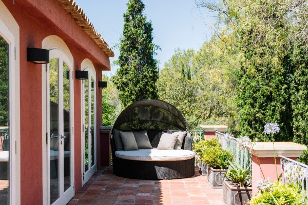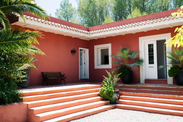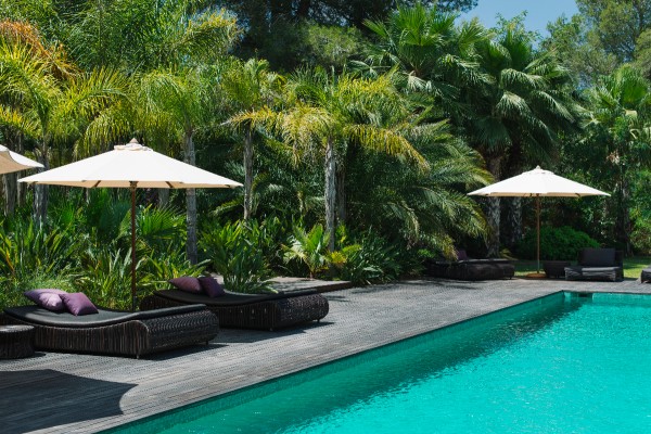 A short drive from Botafoch, this unique Tuscan-style villa is unique in it's style on the island, and only 2 minutes from the shopping and cafés of Santa Gertrudis. Recalling a particular brand of tropical luxury being surrounded by lush vegetation and a grand park, the property is hidden and silent, great for both relaxing and entertaining.