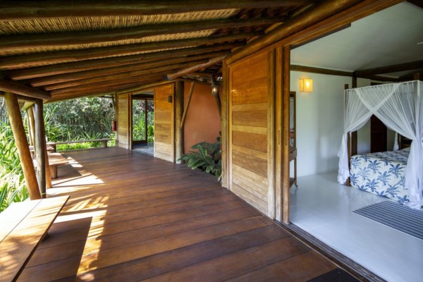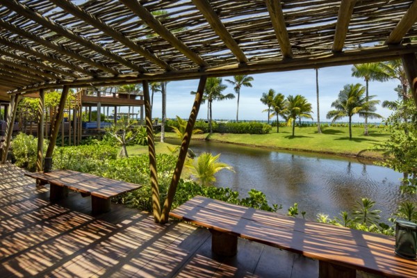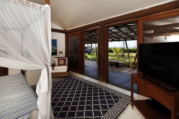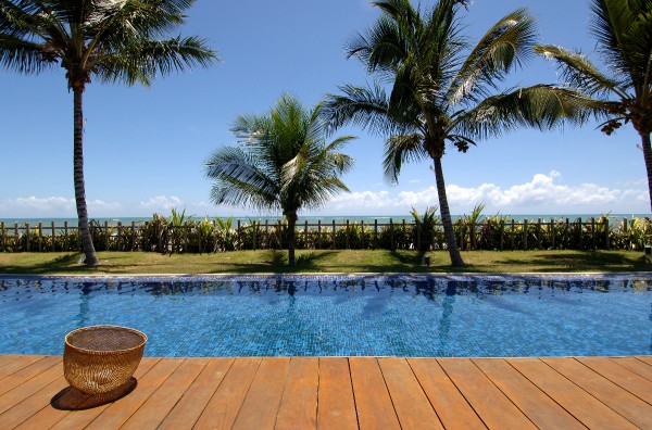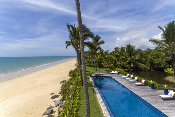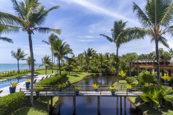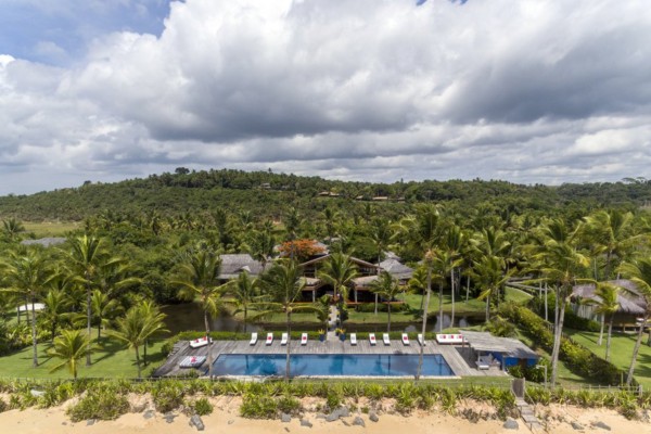One of the most impressive beachfront properties in Trancoso standing amongst tall coconut trees which line an endless ocean of turquoise specked only by the white foam of its waves. The gigantic proportions of this property span from its eighty foot swimming pool to its wide and numerous wooden open terraces whose different levels host eight comfortable and private suites.